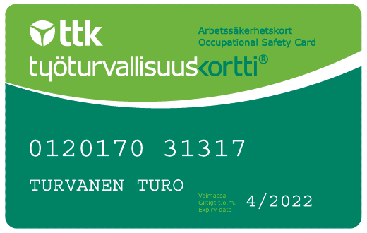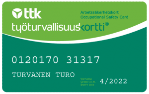 The Occupational Safety Card training provides basic information about the dangers within a working environment and occupational health and safety in shared workplaces. A personal Occupational Safety card, which is valid for five years, is granted to persons who complete the 7-hour training.